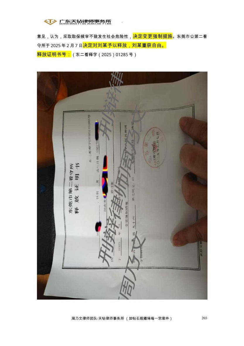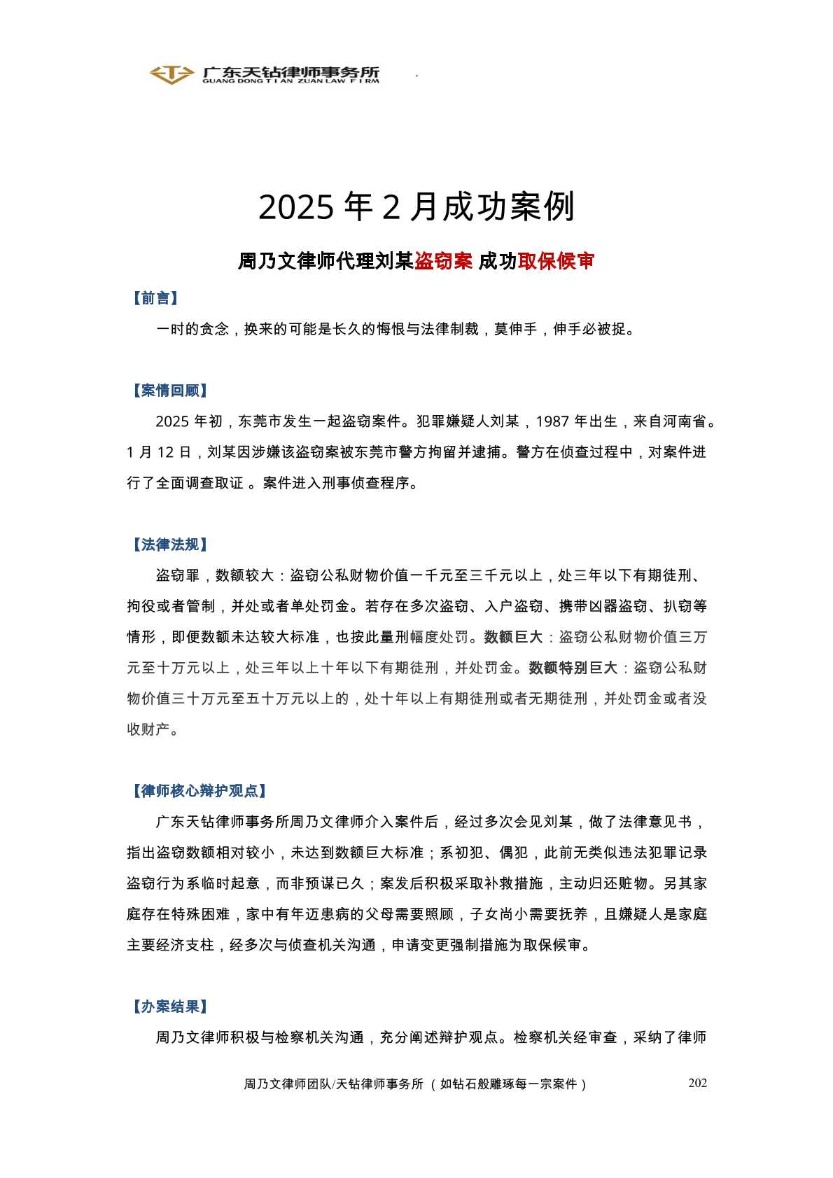 > 2025年2月案例 周乃文律师代理刘某盗窃案成功取保候审